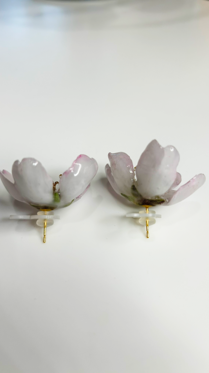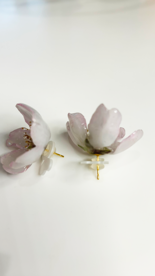 Orecchini a lobo"Fiori di Pesco" con fermo a farfallina