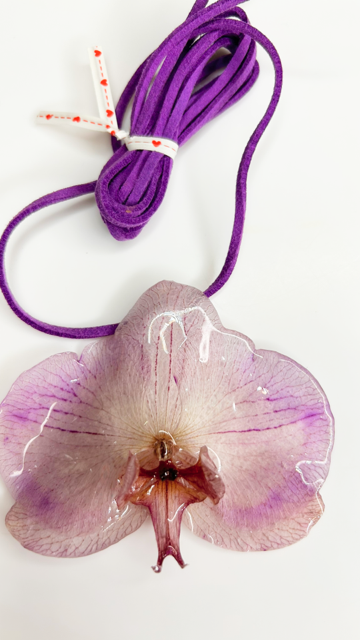 Collana con ordidea viola grande con cordoncino viola super regolabile per cambiare look in un attimo!